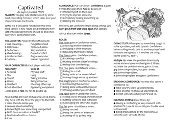 Captivated is a short TTRPG for people who think mind control is hot. It's about hot idiots getting lured away and brainwashed one by one.